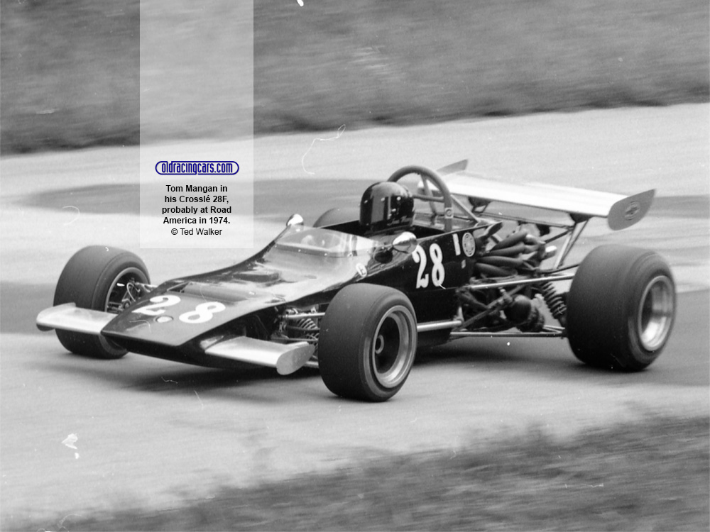 Tom Mangan in his Crosslé 28F, probably at Road America in 1974. Copyright Ted Walker 2024. Used with permission.