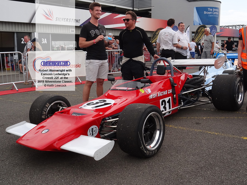 Robert Wainwright with Eamonn Ledwidge's Crosslé 22F at the 2019 Silverstone Classic. Copyright Keith Lewcock 2019. Used with permission.