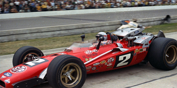Mario Andretti in his backup STP Hawk at the 1969 Indy 500. Copyright Indianapolis Motor Speedway. Copyright permissions granted for non-commercial use by Indianapolis Motor Speedway.