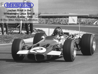 Jochen Rindt winning at Thruxton at Easter 1969 in the Winkelmann Racing Lotus 59B. Copyright The Mike Hayward Collection 2020. Used with permission.